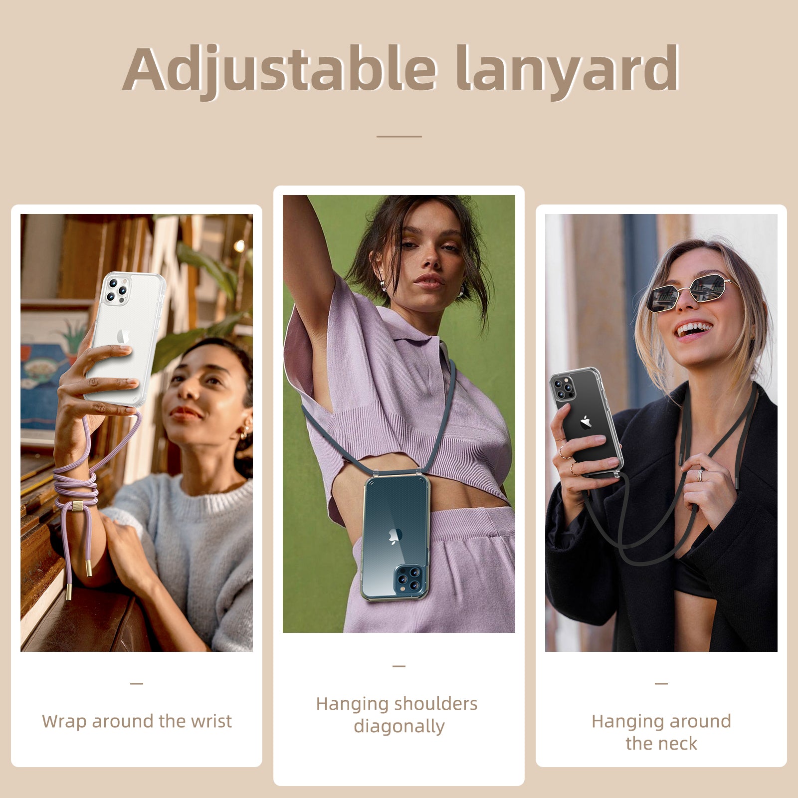 【BUILT-IN FASHION】The original color and beauty of your Apple iPhone 12 Pro Max can be preserved with a transparent protective case. (Detachable & Adjustable) Colorful strap makes your Apple iPhone 12 Pro Max more brilliant.